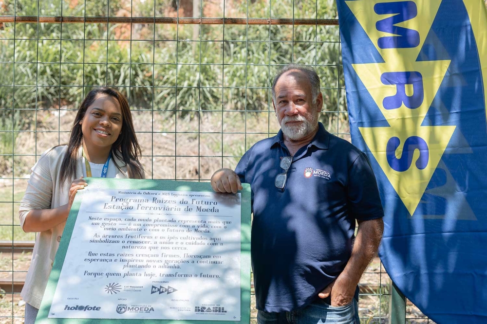 Com o Programa Raízes do Futuro, Moeda reafirma o compromisso com a preservação ambiental, a formação das novas gerações e a valorização do seu patrimônio histórico — plantando hoje as sementes que transformarão o amanhã. A restauração da Estação Ferroviária e a implantação da nova área verde são viabilizadas pela Lei Federal de Incentivo à Cultura, com patrocínio da MRS Logística, gestão da Holofote Cultural, apoio da Prefeitura de Moeda e Invest Minas, com realização do Ministério da Cultura, do Governo Federal..