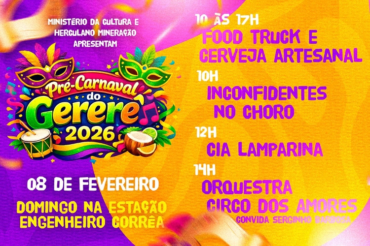 No sábado, 07 de fevereiro, a partir das 14h, o Bloco do Gererê toma as ruas do distrito com a tradicional carretinha do Prisioneiros, mantendo viva uma herança do antigo Bloco das Galinhas, referência histórica do carnaval local. Segundo um dos organizadores, Anildo Santos, a presença do caminhão do Prisioneiros sempre fez parte da história da folia em Engenheiro Corrêa. “Essa tradição vem de muitos anos. Quando retomamos o pré-carnaval em 2025, fizemos questão de manter a carretinha, que já faz parte da memória afetiva da comunidade”, destaca Gabriela Fernandes, também organizadora do evento.